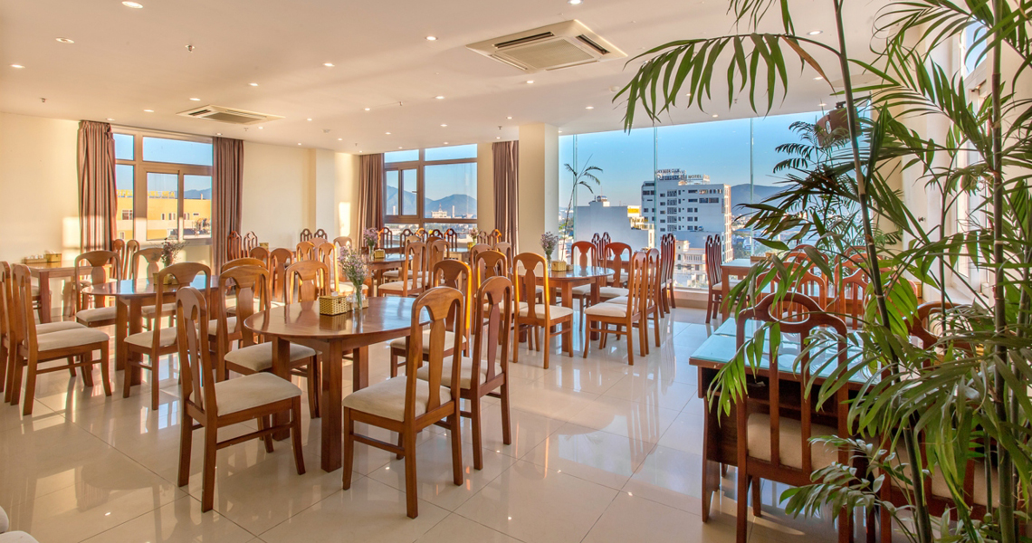 Nhà hàng được bố trí tại tầng 9 tầng cao nhất trong khách sạn với sức chứa đến 150 khách. Từ đây quý khách được chiêm ngưỡng vẻ đẹp nên thơ của biển lúc bình minh hay bóng chiều tà, vẻ đẹp lung linh không thể bỏ qua của thành phố lúc về đêm với các biểu tượng của Đà Nẵng như Cầu Rồng, Cầu Sông Hàn…