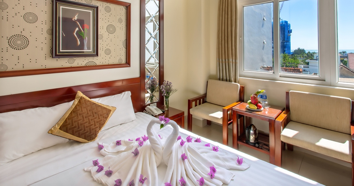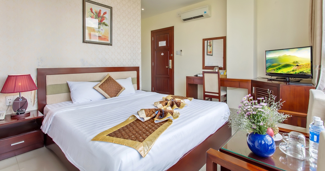MÔ TẢ PHÒNG: Phòng Deluxe Double được trang bị tiện nghi, thiết kế hài hòa, mang đến cho bạn những giờ phút nghỉ ngơi, thư giãn thoải mái.